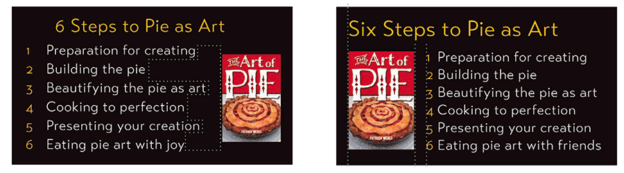 - 方框中的文字:如果你确实要把文字放进方框里,那就要在四周留出足够的空间。